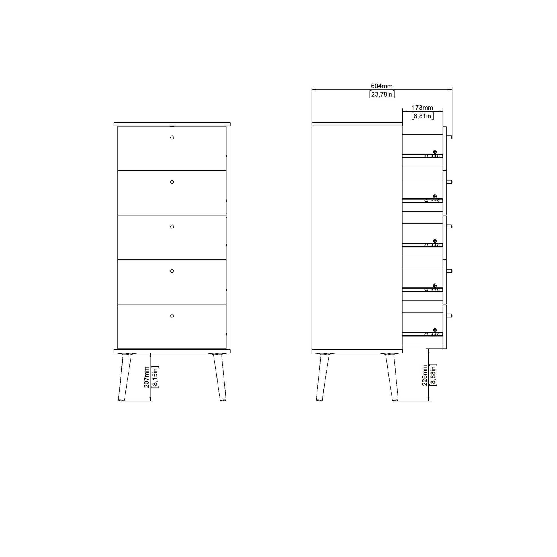 The Cumbria Narrow Chest is a perfect match for any contemporary and minimalist decor, adding a touch of sophistication to your room. It has five drawers that provide plenty of storage space. With its solid Oak wooden legs and handles, this product will last for many years.